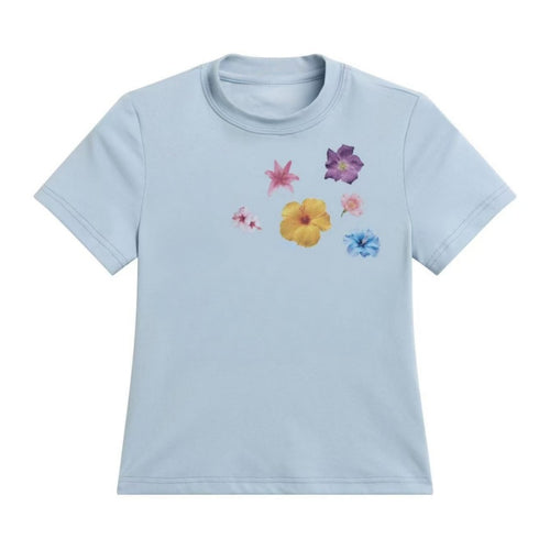 Blue T-Shirt with Fun Chic Floral Print